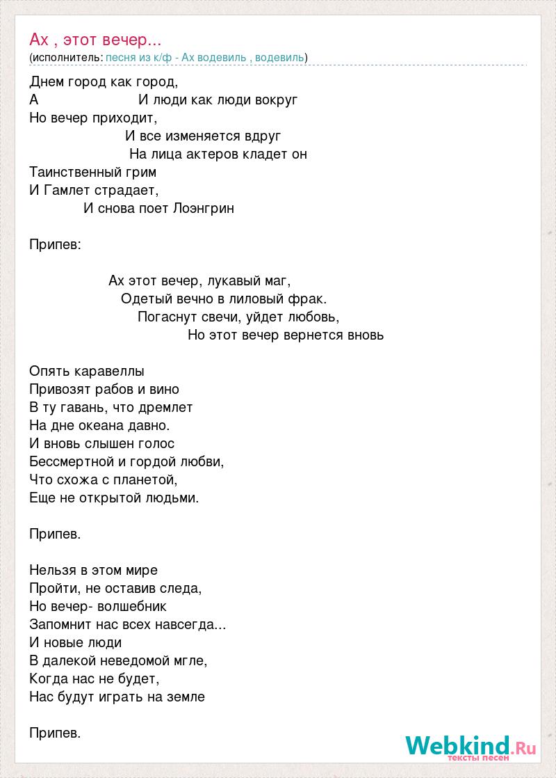 А как ты думаешь, о чем песня "Ах , этот вечер..." ?
