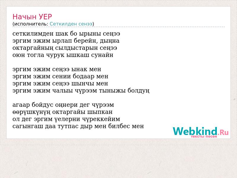 сеткилимден шак бо ырыны сеңээ эргим эжим ырлап берейн, дыңна октаргайның сылдыстарын сеңээ оюн тогла чурук ышкаш сунайн эргим эжим сеңээ ынак мен эргим эжим сении бодаар мен эргим эжим сеңээ шынчы мен эргим эжим чалыы чүрээм тыныжы болдуң агаар бойдус оңнери дег чүрээм өөрүшкүнүң октаргайы шыпкан ол дег эргим үелерни чүреккейим сагынгаш даа тутпас дыр мен билбес мен