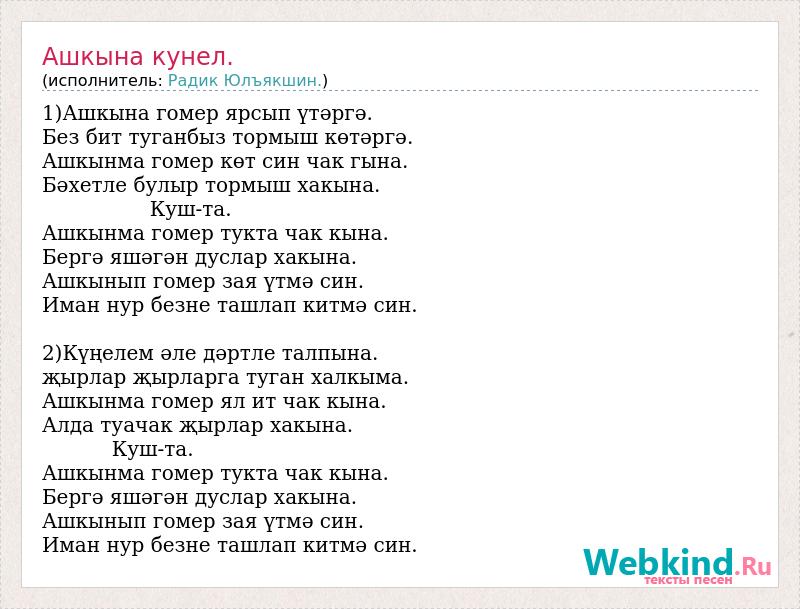 Ашкынма гомер көт син чак гына.