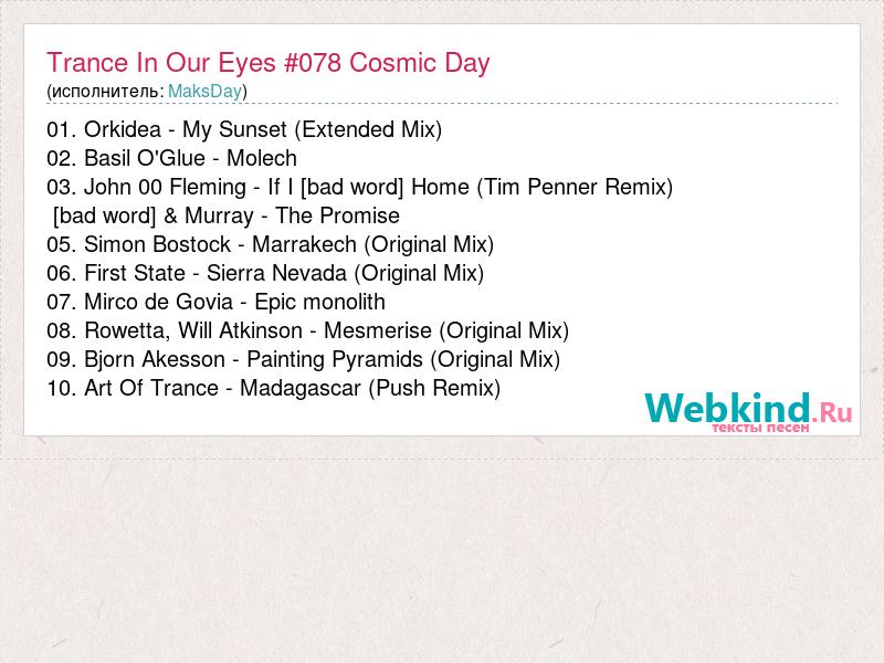 А как ты думаешь, о чем песня "Trance In Our Eyes #078 Cosmic Day" ?