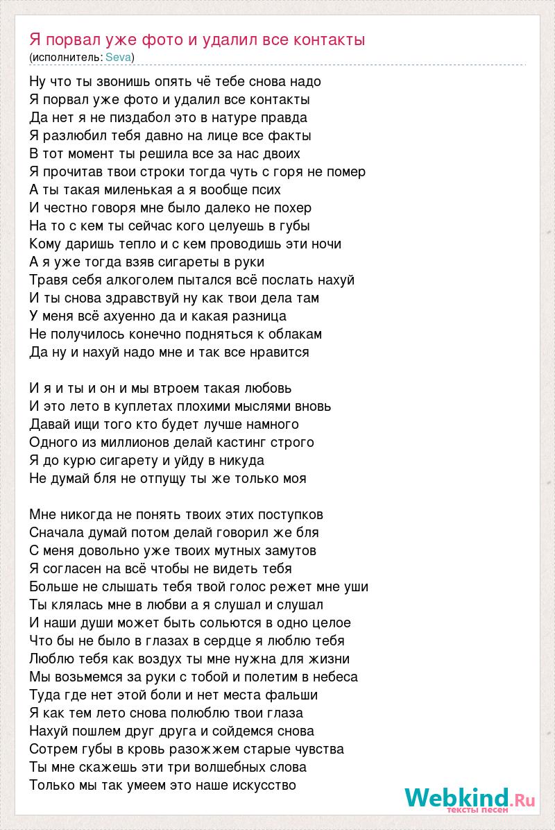 А как ты думаешь, о чем песня "Я порвал уже фото и удалил все контакты" ?
