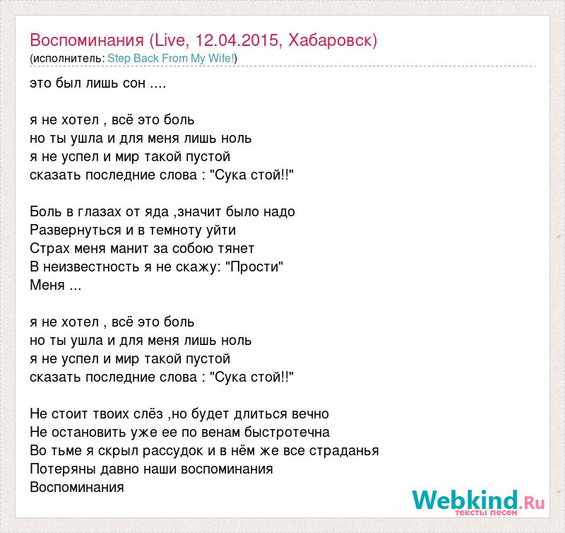 А как ты думаешь, о чем песня "Воспоминания (Live, 12.04.2015, Хабаровск)" ?