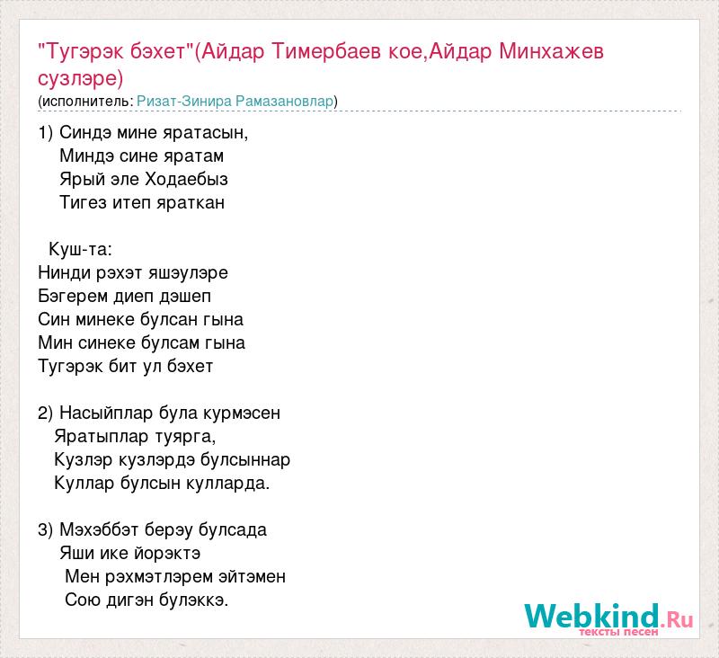 "Тугэрэк бэхет"(Айдар Тимербаев кое,Айдар Минхажев сузлэре)