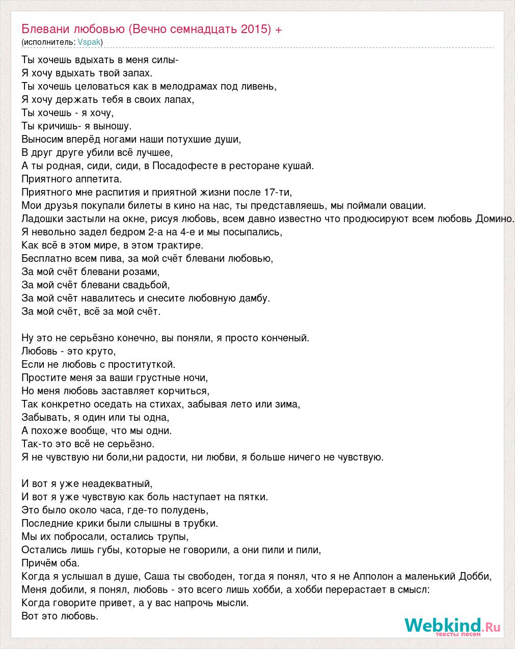 А как ты думаешь, о чем песня "Блевани любовью (Вечно семнадцать 2015) +" ?