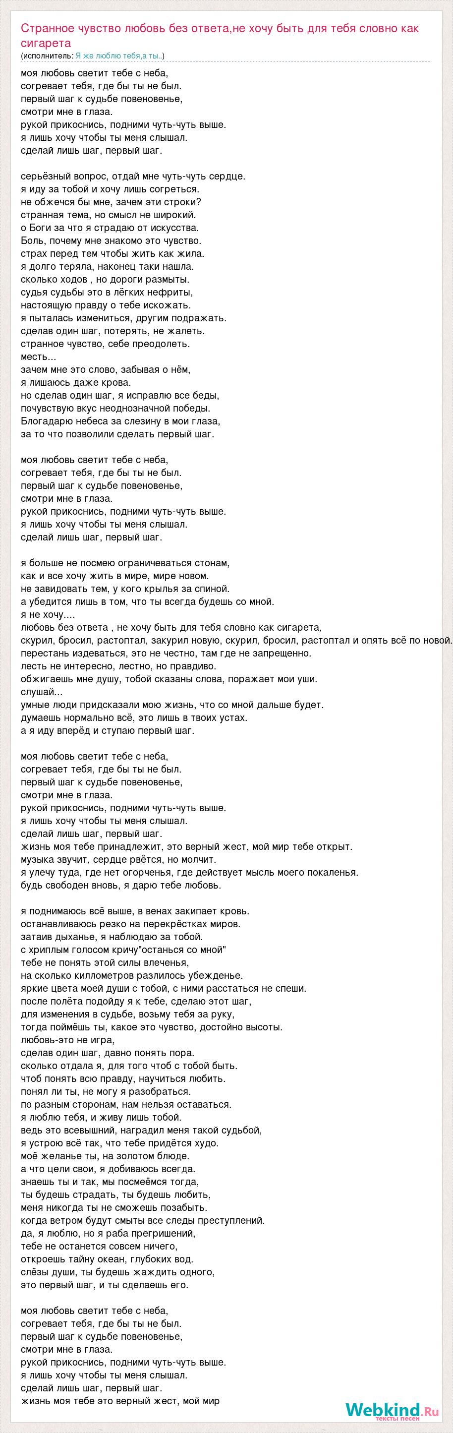 Странное чувство любовь без ответа,не хочу быть для тебя словно как сигарета