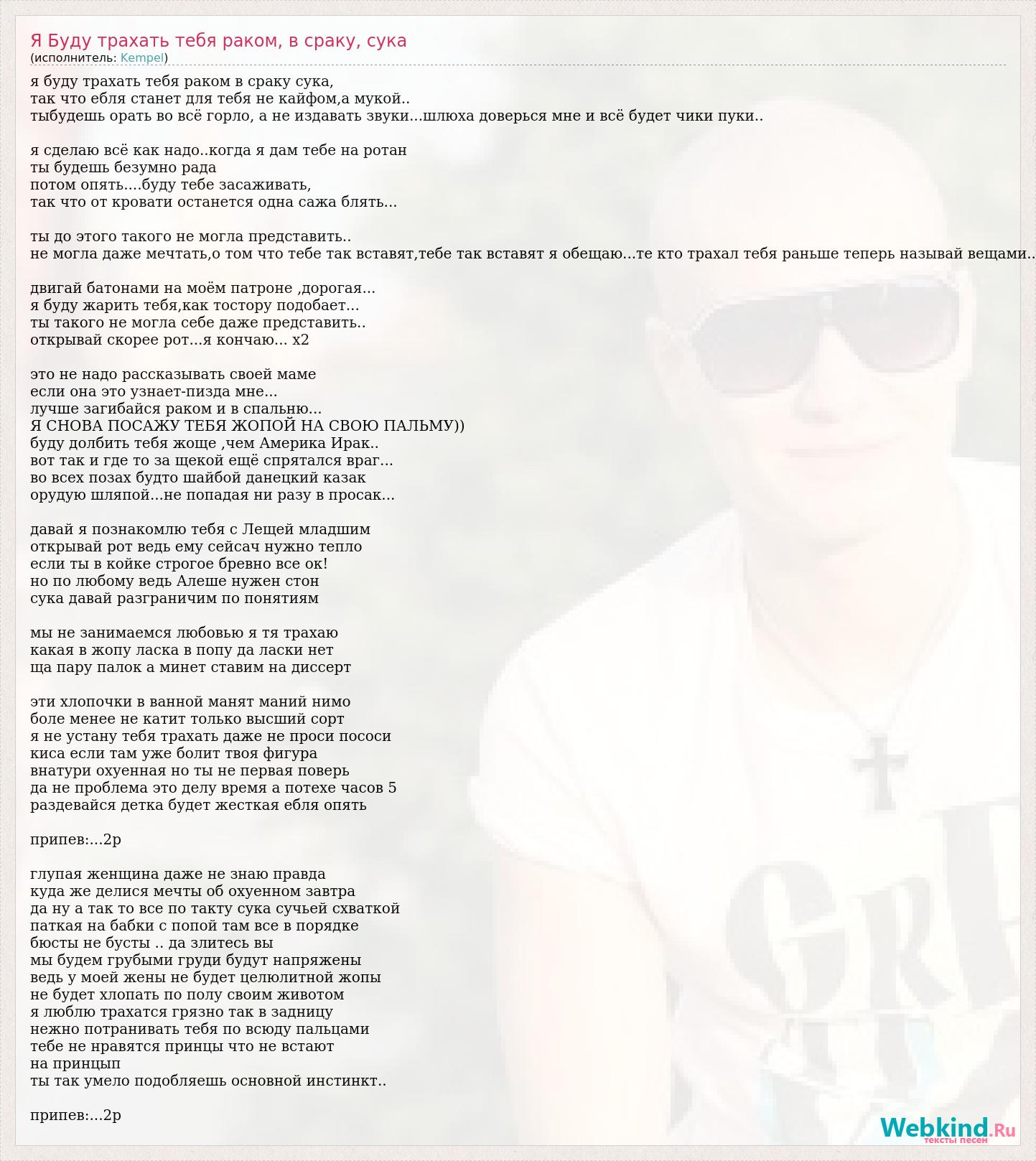 А как ты думаешь, о чем песня "Я Буду трахать тебя раком, в сраку, сука" ?