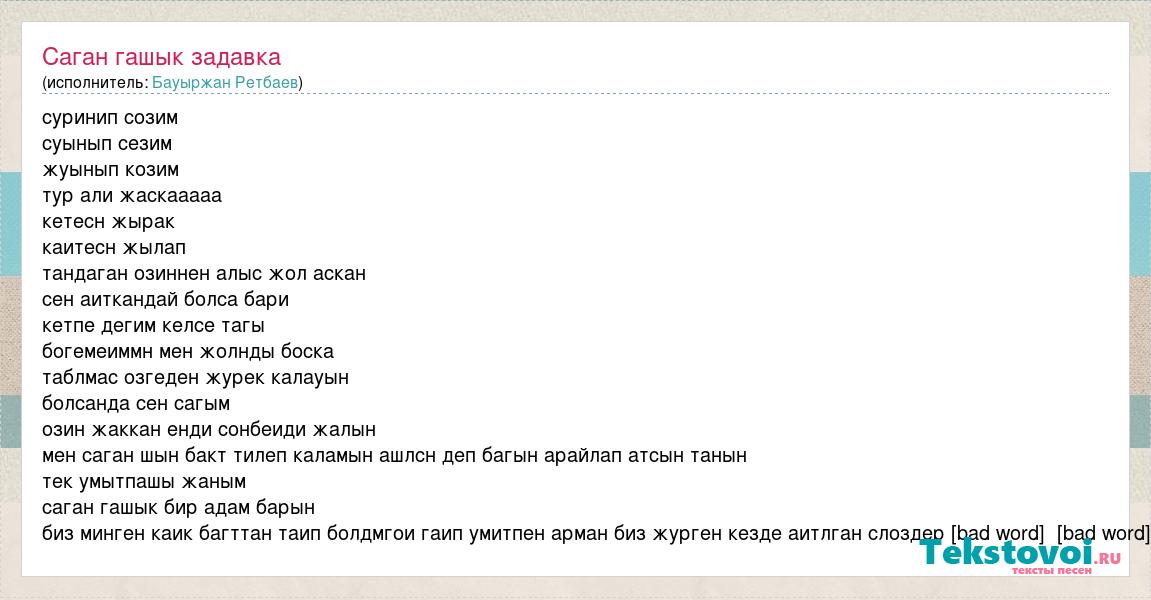 суринип созим суынып сезим жуынып козим тур али жаскааааа кетесн жырак каитесн жылап тандаган озиннен алыс жол аскан сен аиткандай болса бари кетпе дегим келсе тагы богемеиммн мен жолнды боска таблмас озгеден журек калауын болсанда сен сагым озин жаккан енди сонбеиди жалын мен саган шын бакт тилеп каламын ашлсн деп багын арайлап атсын танын тек умытпашы жаным саган гашык бир адам барын биз минген каик багттан таип болдмгои гаип умитпен арман биз журген кезде аитлган слоздер [bad word] [bad word]