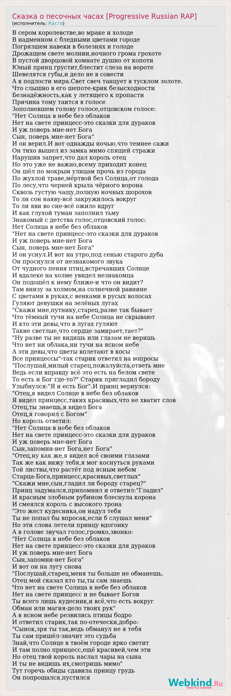 А как ты думаешь, о чем песня "Сказка о песочных часах [Progressive Russian RAP]" ?