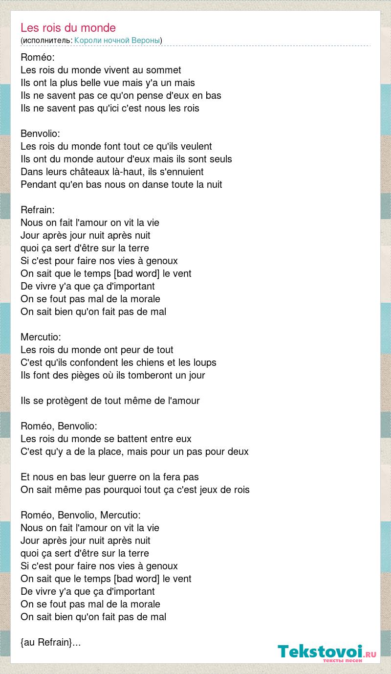 А как ты думаешь, о чем песня "Les rois du monde" ?
