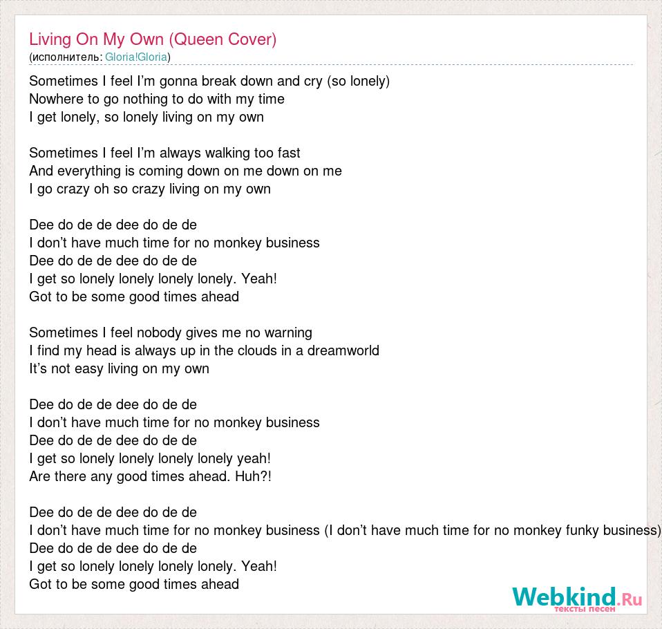 Sometimes I feel I’m gonna break down and cry (so lonely) Nowhere to go nothing to do with my time I get lonely, so lonely living on my own Sometimes I feel I’m always walking too fast And everything is coming down on me down on me I go crazy oh so crazy living on my own Dee do de de dee do de de I don’t have much time for no monkey business Dee do de de dee do de de I get so lonely lonely lonely lonely. Yeah! Got to be some good times ahead Sometimes I feel nobody gives me no warning I find my head is always up in the clouds in a dreamworld It’s not easy living on my own Dee do de de dee do de de I don’t have much time for no monkey business Dee do de de dee do de de I get so lonely lonely lonely lonely yeah! Are there any good times ahead. Huh?! Dee do de de dee do de de I don’t have much time for no monkey business (I don’t have much time for no monkey funky business) Dee do de de dee do de de I get so lonely lonely lonely lonely. Yeah! Got to be some good times ahead