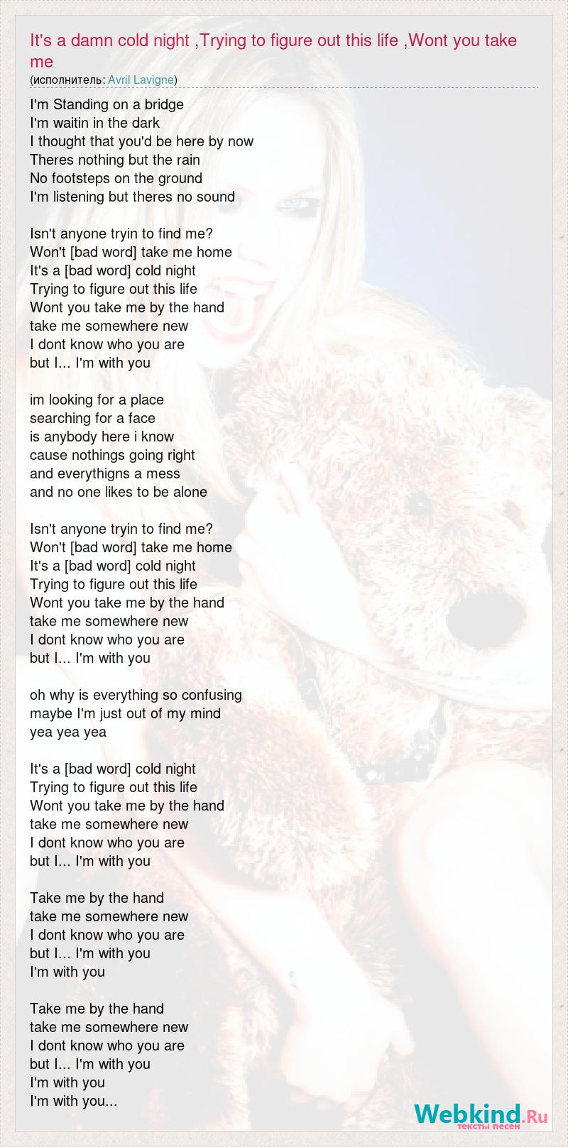 Главная→Исполнители→Avril Lavigne→It's a damn cold night ,Trying to figure out this life ,Wont you take