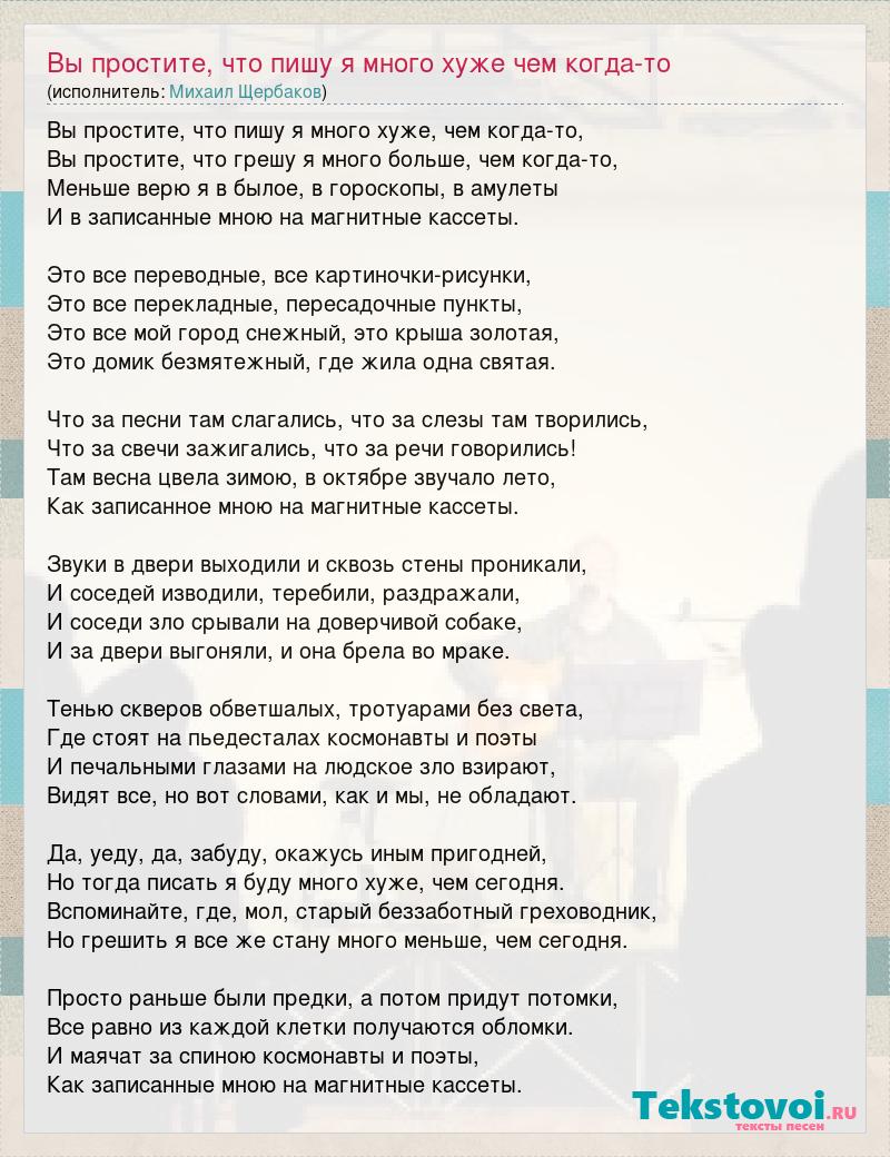 А как ты думаешь, о чем песня "Вы простите, что пишу я много хуже чем когда-то" ?