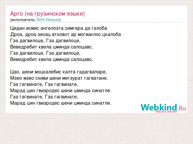 А как ты думаешь, о чем песня "Арго (на грузинском языке)" ?