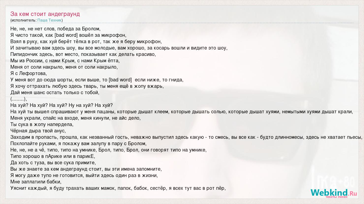 А как ты думаешь, о чем песня "За кем стоит андеграунд" ?
