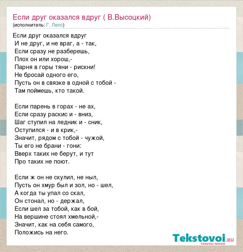 Если друг оказался вдруг ( В.Высоцкий)