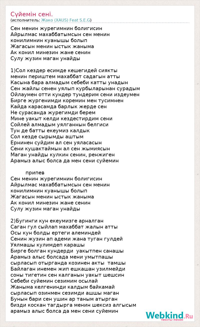 А как ты думаешь, о чем песня "Сүйемін сені." ?