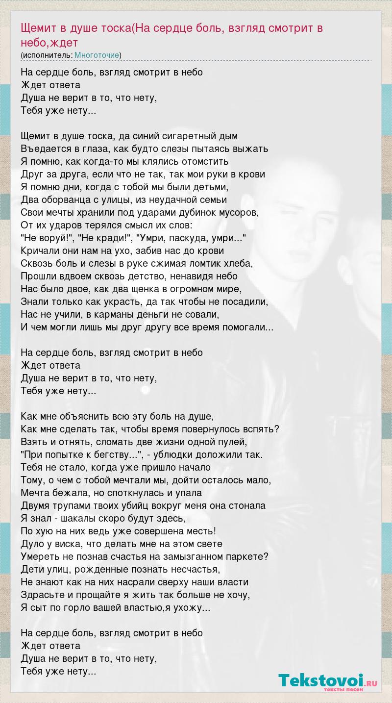 Главная→Исполнители→Многоточие→Щемит в душе тоска(На сердце боль, взгляд смотрит в небо,ждет ответа...Душ