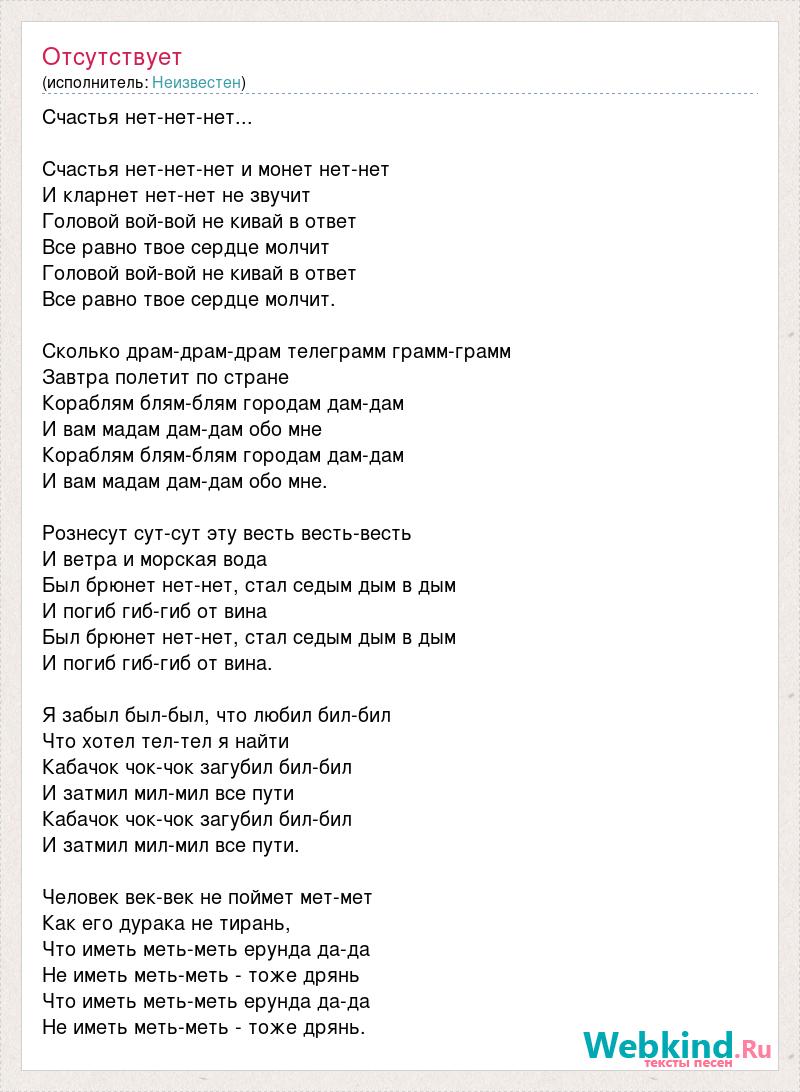 А как ты думаешь, о чем песня "Счастья нет-нет-нет..." ?