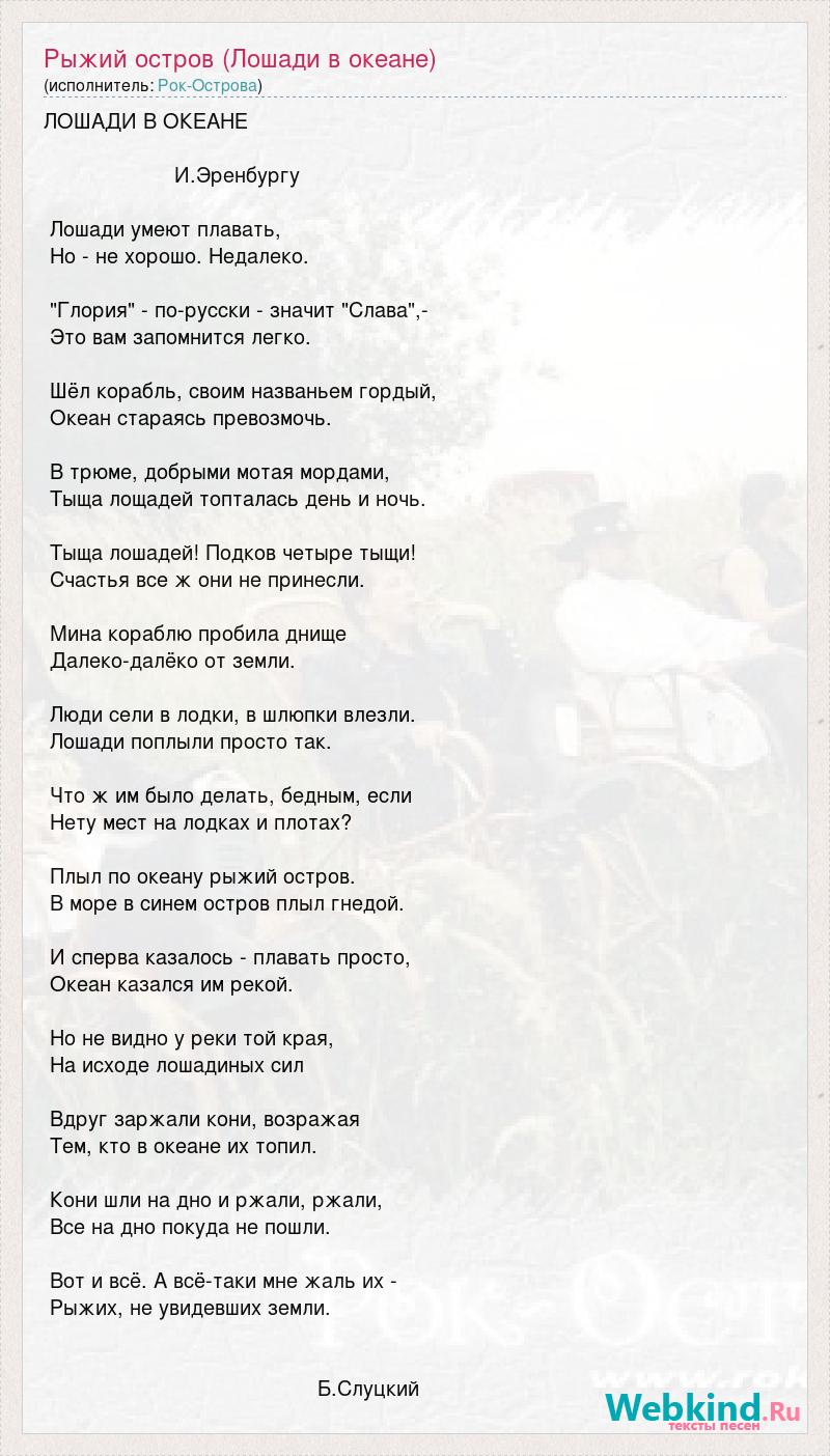 А как ты думаешь, о чем песня "Рыжий остров (Лошади в океане)" ?