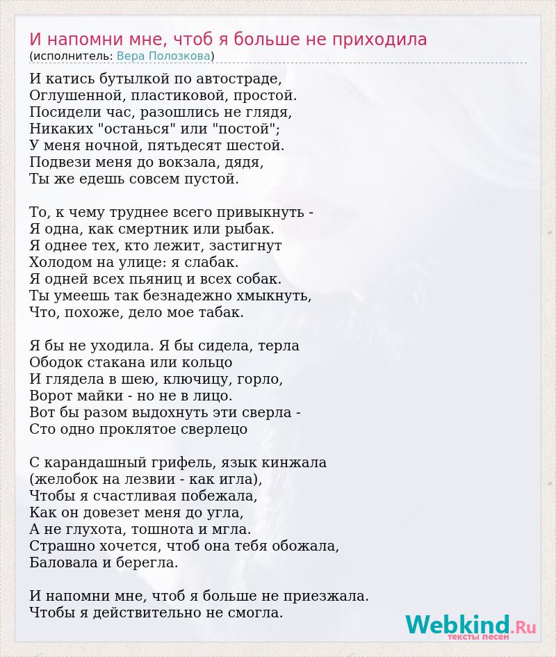 А как ты думаешь, о чем песня "И напомни мне, чтоб я больше не приходила" ?
