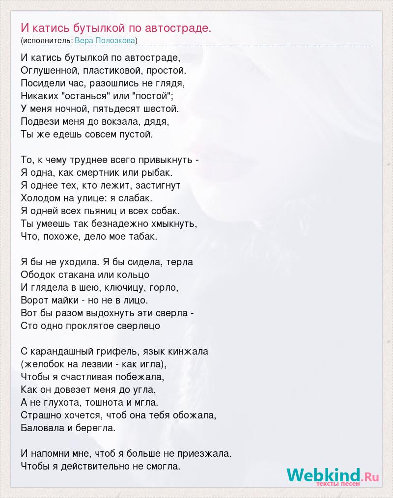 А как ты думаешь, о чем песня "И катись бутылкой по автостраде." ?