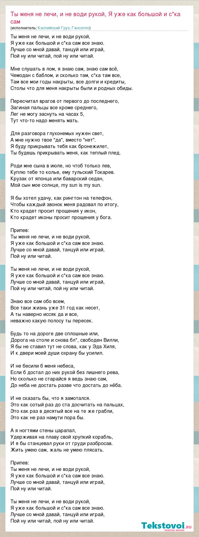 Главная→Исполнители→Каспийский Груз, Гансэлло→Ты меня не лечи, и не води рукой, Я уже как большой и с*ка сам