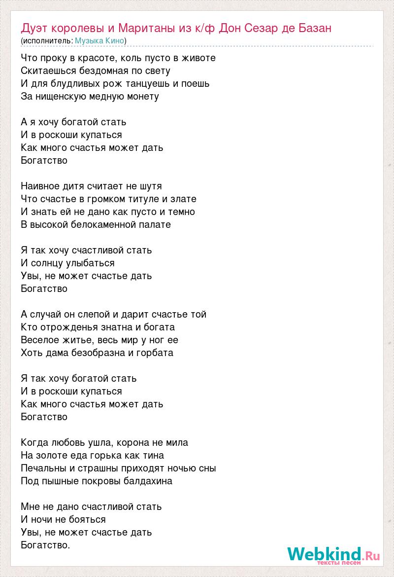 А как ты думаешь, о чем песня "Дуэт королевы и Маританы из к/ф Дон Сезар де Базан" ?