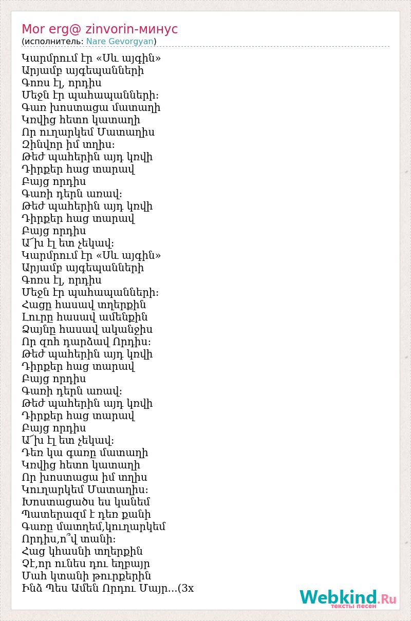 А как ты думаешь, о чем песня "Mor erg@ zinvorin-минус" ?