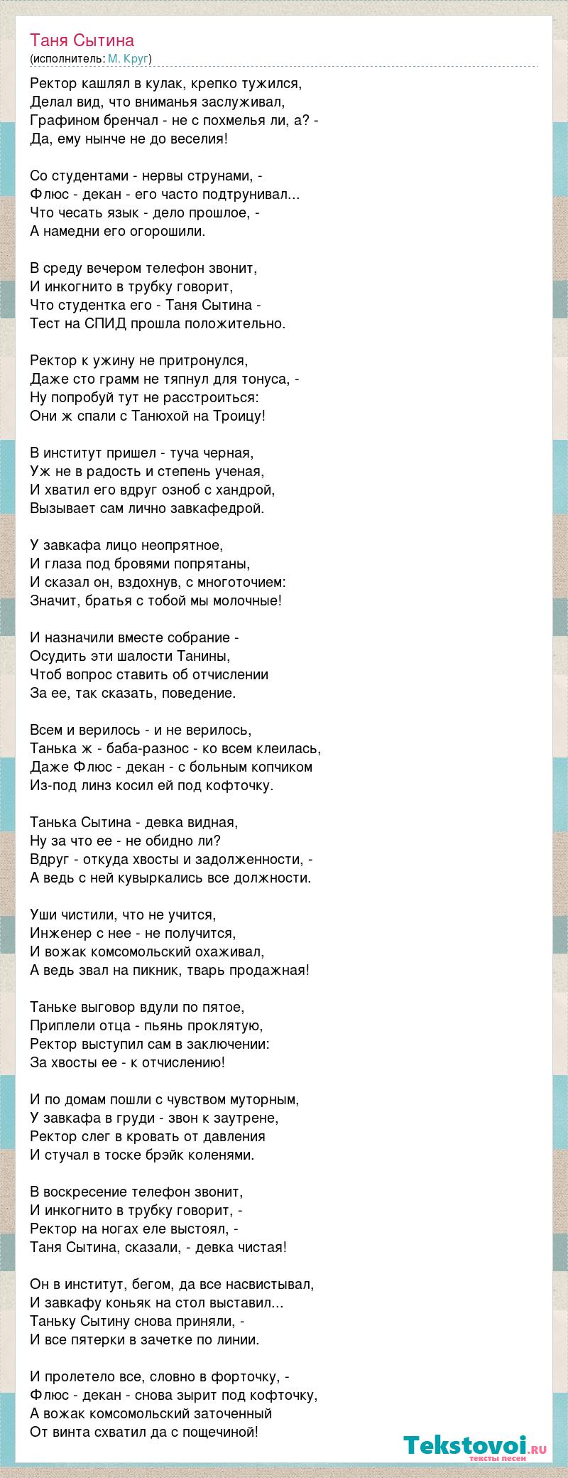 А как ты думаешь, о чем песня "Таня Сытина" ?