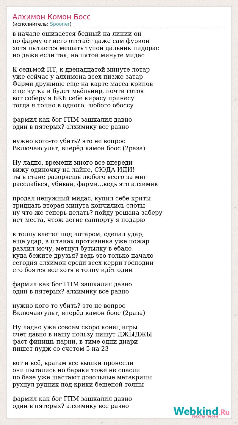 А как ты думаешь, о чем песня "Алхимон Комон Босс" ?