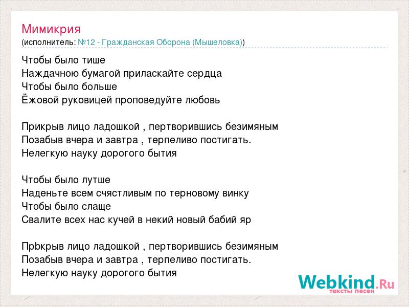 А как ты думаешь, о чем песня "Мимикрия" ?