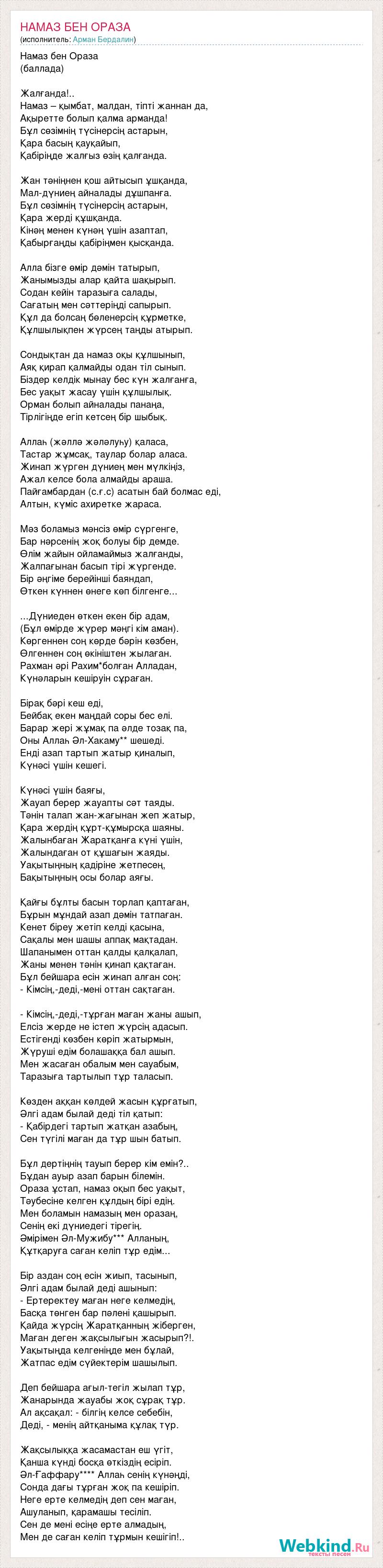 А как ты думаешь, о чем песня "НАМАЗ БЕН ОРАЗА" ?