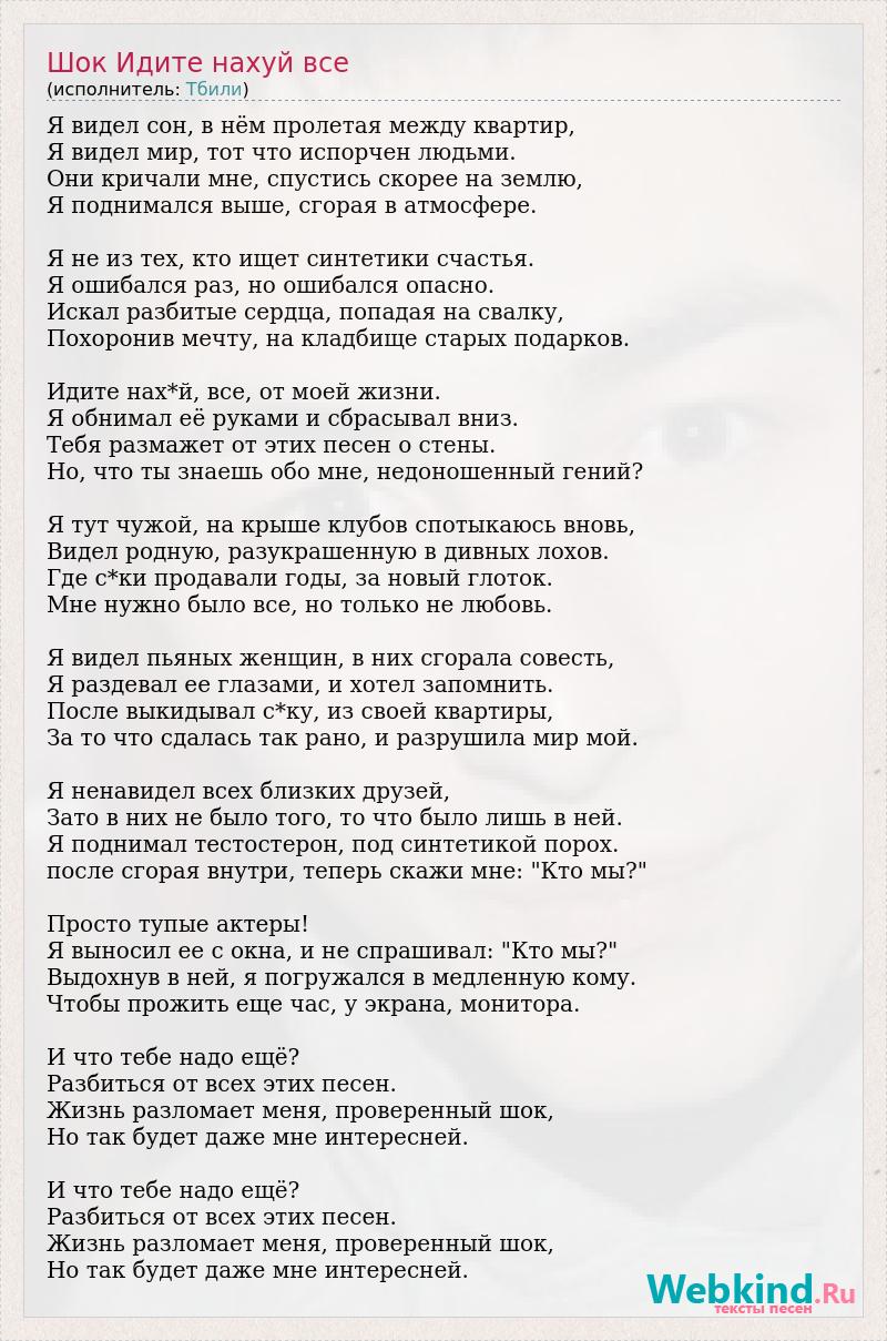А как ты думаешь, о чем песня "Шок Идите нахуй все" ?