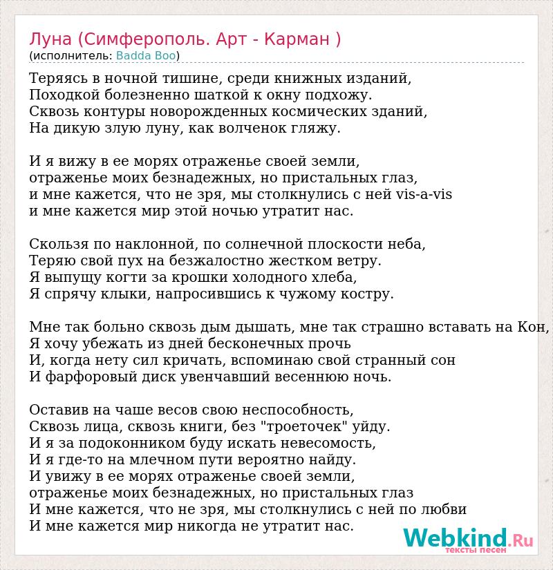 А как ты думаешь, о чем песня "Луна (Симферополь. Арт - Карман )" ?
