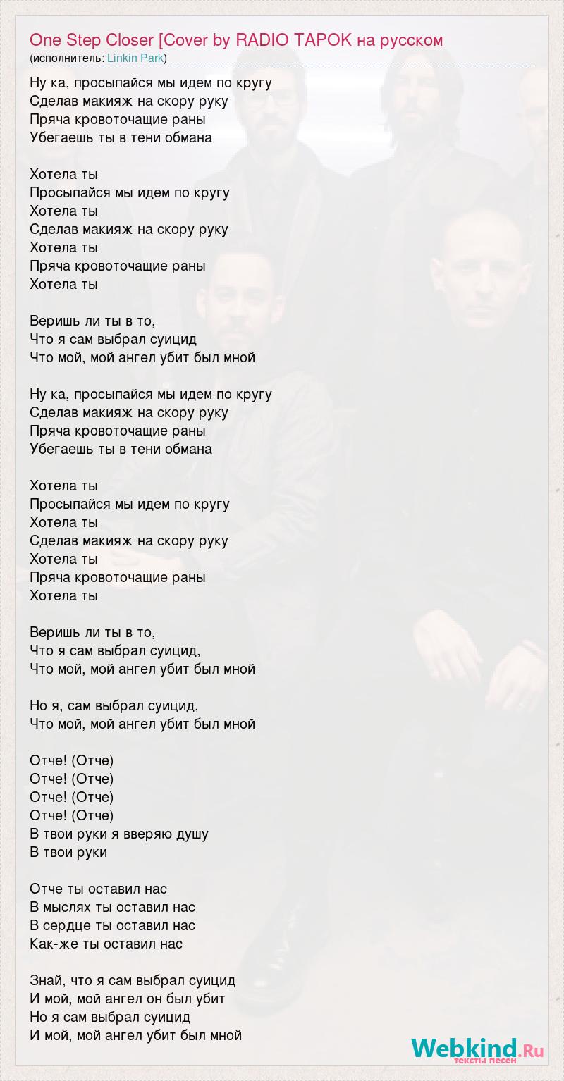 А как ты думаешь, о чем песня "One Step Closer [Cover by RADIO TAPOK на русском" ?