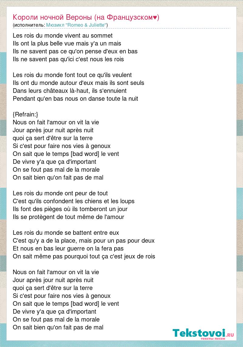 А как ты думаешь, о чем песня "Короли ночной Вероны (на Французском♥)" ?