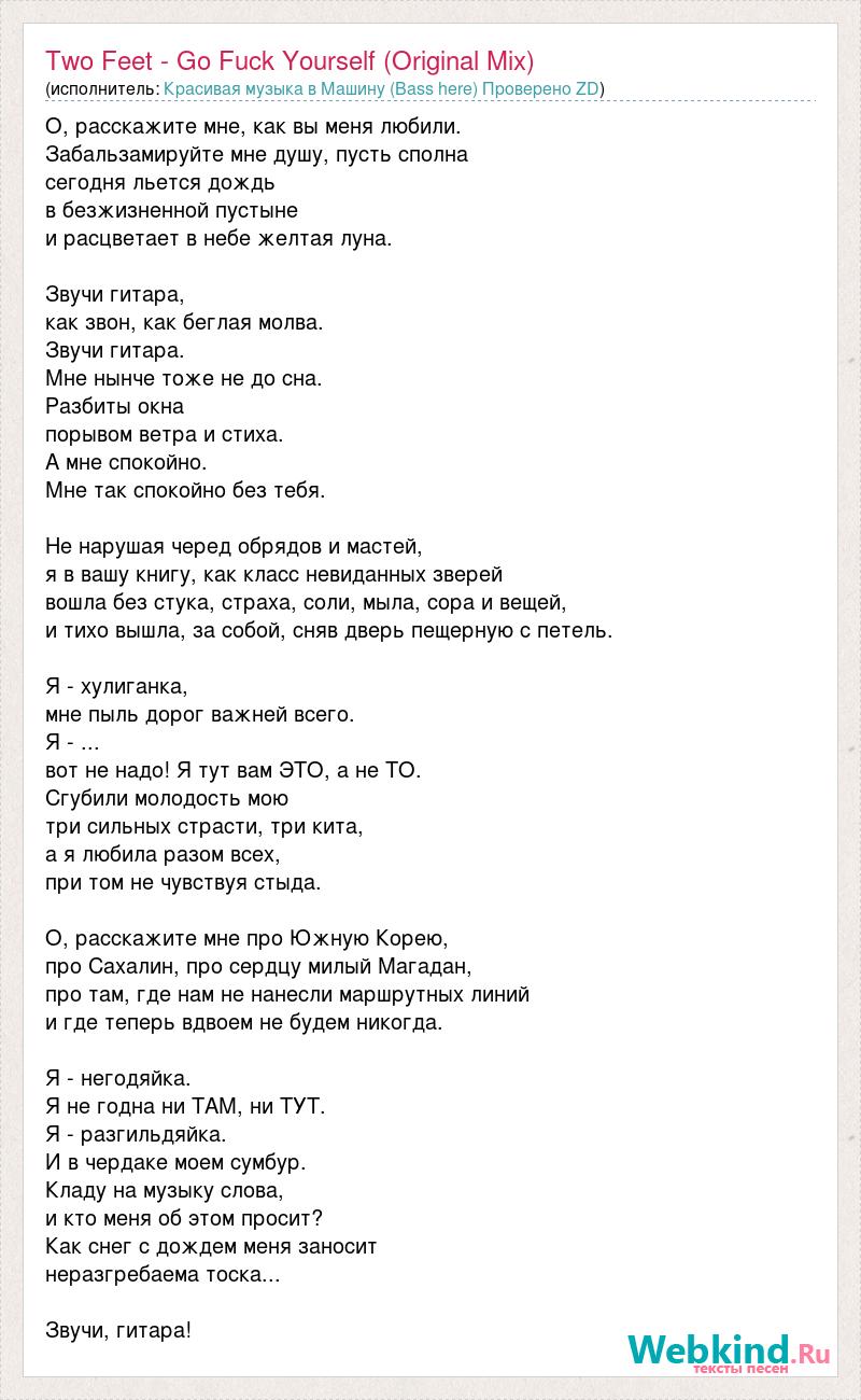Главная→Исполнители→Красивая музыка в Машину (Bass here) Проверено ZD→Two Feet - Go Fuck Yourself (Original Mix)