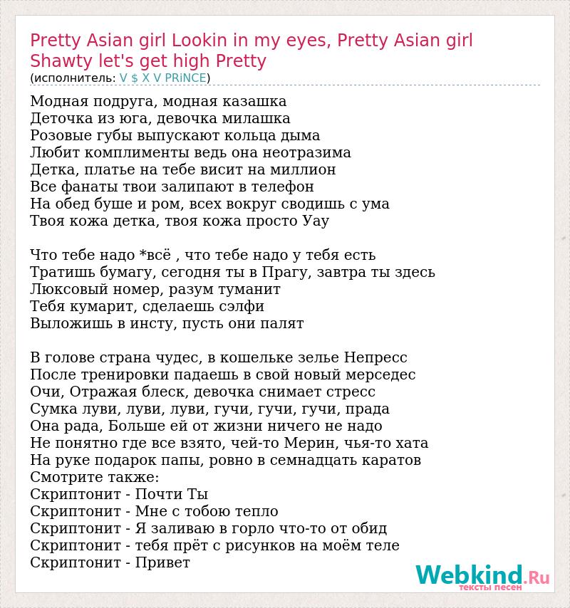 Главная→Исполнители→V $ X V PRiNCE→Pretty Asian girl Lookin in my eyes, Pretty Asian girl Shawty let's