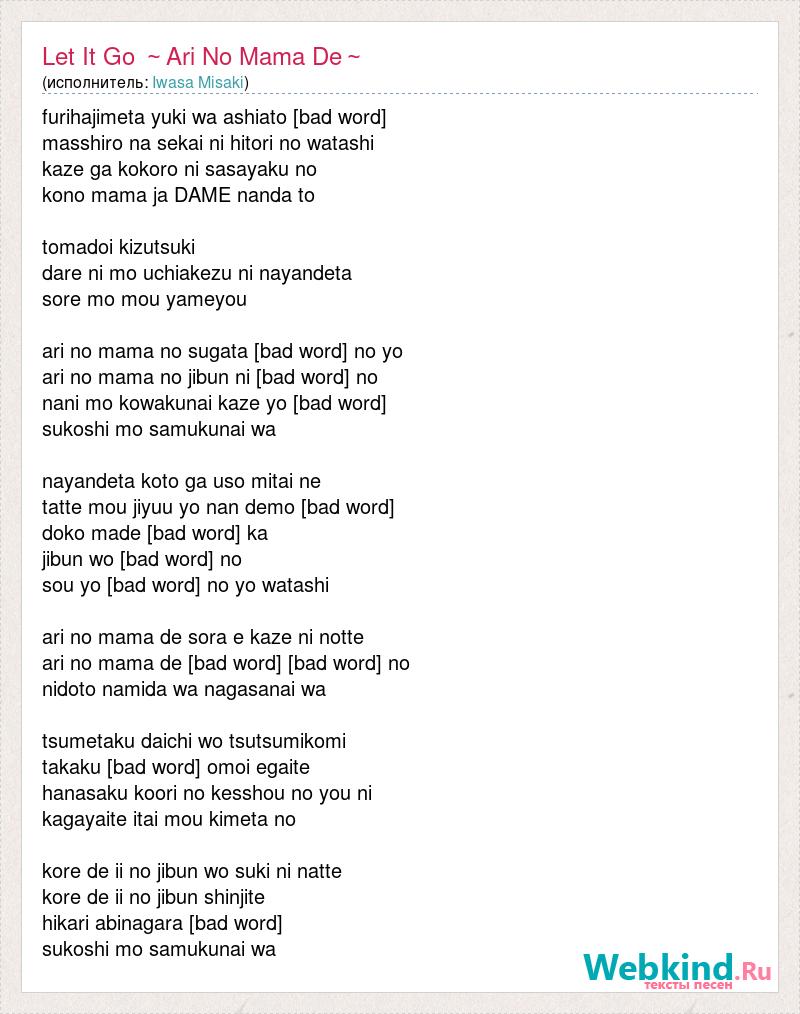 А как ты думаешь, о чем песня "Let It Go ~Ari No Mama De~" ?