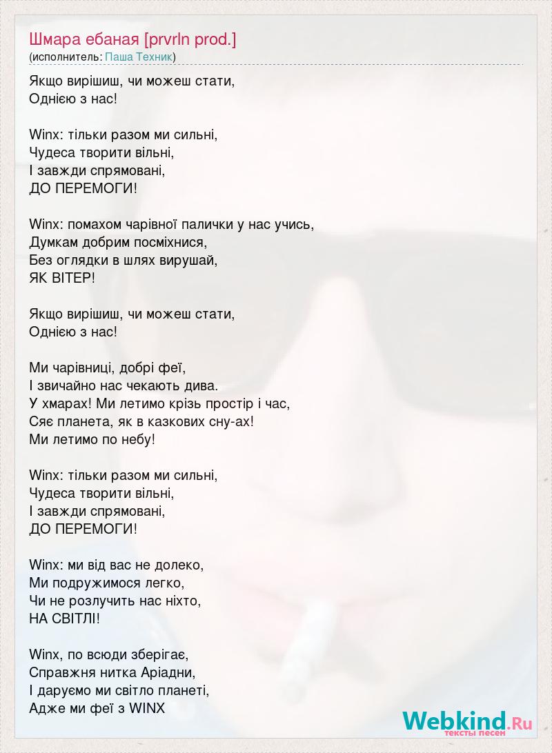 Якщо вирішиш, чи можеш стати, Однією з нас! Winx: тільки разом ми сильні, Чудеса творити вільні, І завжди спрямовані, ДО ПЕРЕМОГИ! Winx: помахом чарівної палички у нас учись, Думкам добрим посміхнися, Без оглядки в шлях вирушай, ЯК ВІТЕР! Якщо вирішиш, чи можеш стати, Однією з нас! Ми чарівниці, добрі феї, І звичайно нас чекають дива. У хмарах! Ми летимо крізь простір і час, Сяє планета, як в казкових сну-ах! Ми летимо по небу! Winx: тільки разом ми сильні, Чудеса творити вільні, І завжди спрямовані, ДО ПЕРЕМОГИ! Winx: ми від вас не долеко, Ми подружимося легко, Чи не розлучить нас ніхто, НА СВІТЛІ! Winx, по всюди зберігає, Справжня нитка Аріадни, І даруємо ми світло планеті, Адже ми феї з WINX