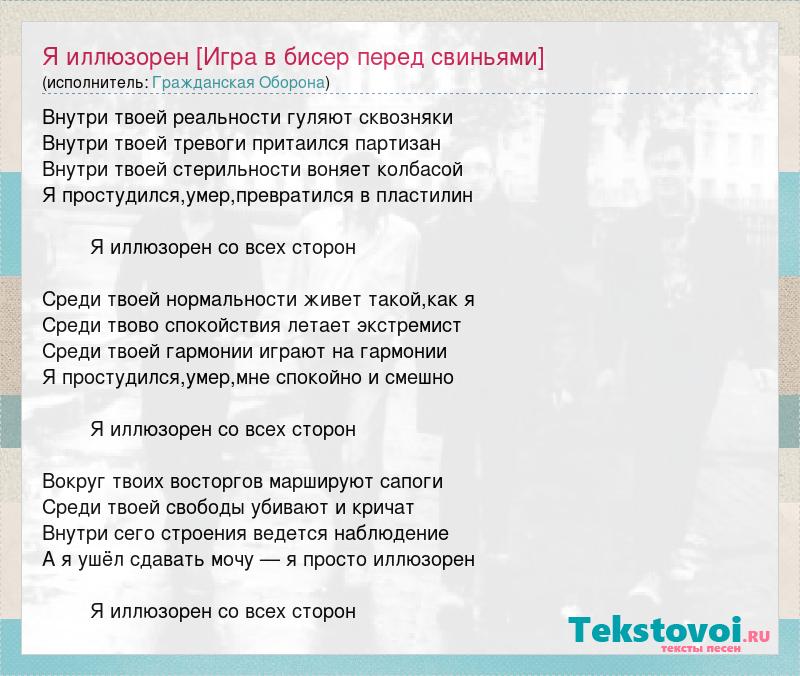 А как ты думаешь, о чем песня "Я иллюзорен [Игра в бисер перед свиньями]" ?