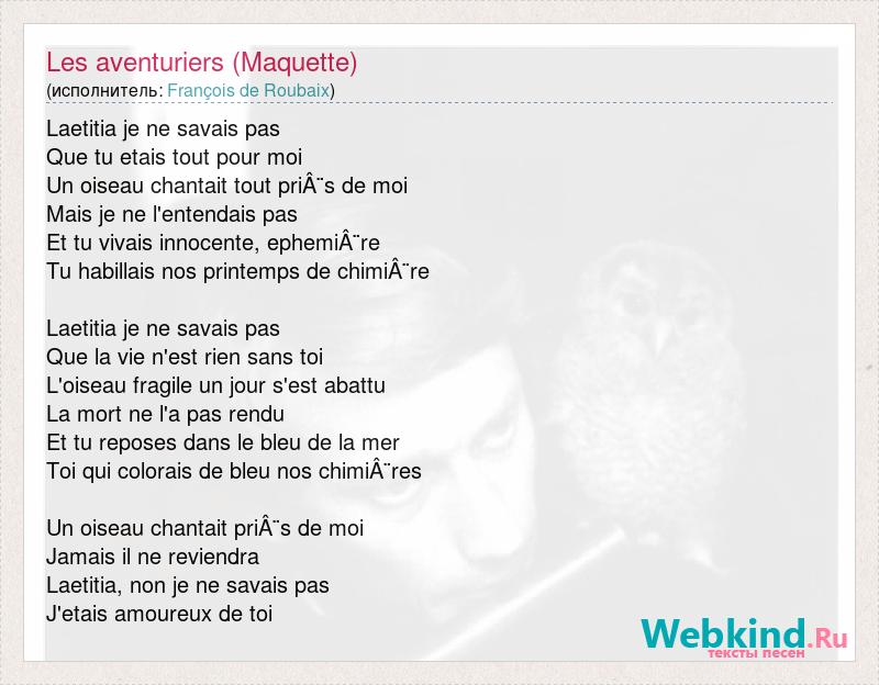 А как ты думаешь, о чем песня "Les aventuriers (Maquette)" ?