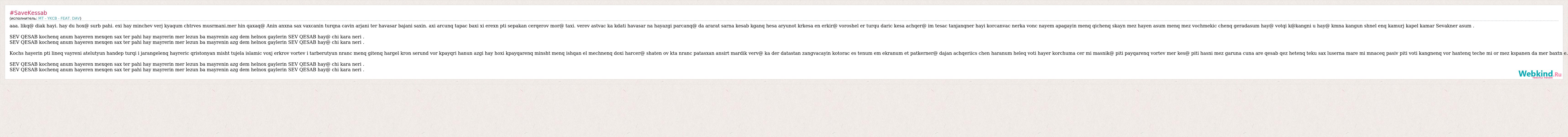 aaa. likq@ diak hayi. hay du hox@ surb pahi. exi hay minchev verj kyaqum chtrves musrmani.mer hin qaxaq@ Anin anxna sax vaxcanin turqna cavin arjani ter havasar bajani saxin. axi arcunq tapac baxi xi erexn pti sepakan cerqerov mor@ taxi. verev astvac ka kdati havasar na hayazgi parcanq@ da ararat sarna kesab kganq hesa aryunot krkesa en erkir@ voroshel er turqu daric kesa achqer@ im tesac tanjanqner hayi korcanvac nerka vonc nayem apagayin menq qichenq skayn mez hayen asum menq mez vochmekic chenq geradasum hay@ votqi k@kangni u hay@ kmna kangun shnel enq kamurj kapel kamar Sevakner asum . SEV QESAB kochenq anum hayeren mexqen sax ter pahi hay mayrerin mer lezun ba mayrenin azg dem helnox gaylerin SEV QESAB hay@ chi kara neri . SEV QESAB kochenq anum hayeren mexqen sax ter pahi hay mayrerin mer lezun ba mayrenin azg dem helnox gaylerin SEV QESAB hay@ chi kara neri . Kochs hayerin pti lineq vayreni atelutyun handep turqi i jarangelenq hayreric qristonyan misht tujela islamic voxj erkrov vortev i tarberutyun nranc menq gitenq hargel kron serund vor kpayqri hanun azgi hay hoxi kpayqarenq minsht menq ishqan el mechnenq doxi harcer@ shaten ov kta nranc patasxan ansirt mardik verv@ ka der datastan zangvacayin kotorac es tenum em ekranum et patkerner@ dajan achqeriics chen haranum heleq voti hayer korchuma cer mi masnik@ piti payqarenq vortev mer kes@ piti hasni mez garuna cuna are qesab qez hetenq teku sax luserna mare mi mnaceq pasiv piti voti kangnenq vor haxtenq teche mi or mez kspanen da mer baxtn e. SEV QESAB kochenq anum hayeren mexqen sax ter pahi hay mayrerin mer lezun ba mayrenin azg dem helnox gaylerin SEV QESAB hay@ chi kara neri . SEV QESAB kochenq anum hayeren mexqen sax ter pahi hay mayrerin mer lezun ba mayrenin azg dem helnox gaylerin SEV QESAB hay@ chi kara neri .