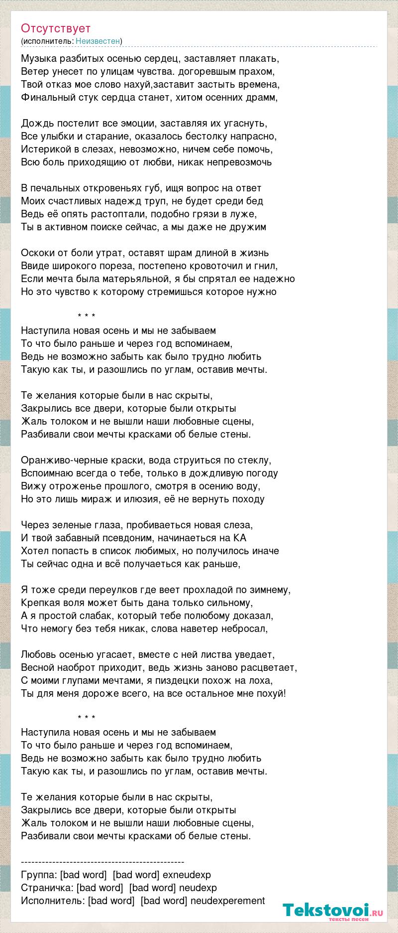 А как ты думаешь, о чем песня "Музыка разбитых осенью сердец, заставляет плакать" ?