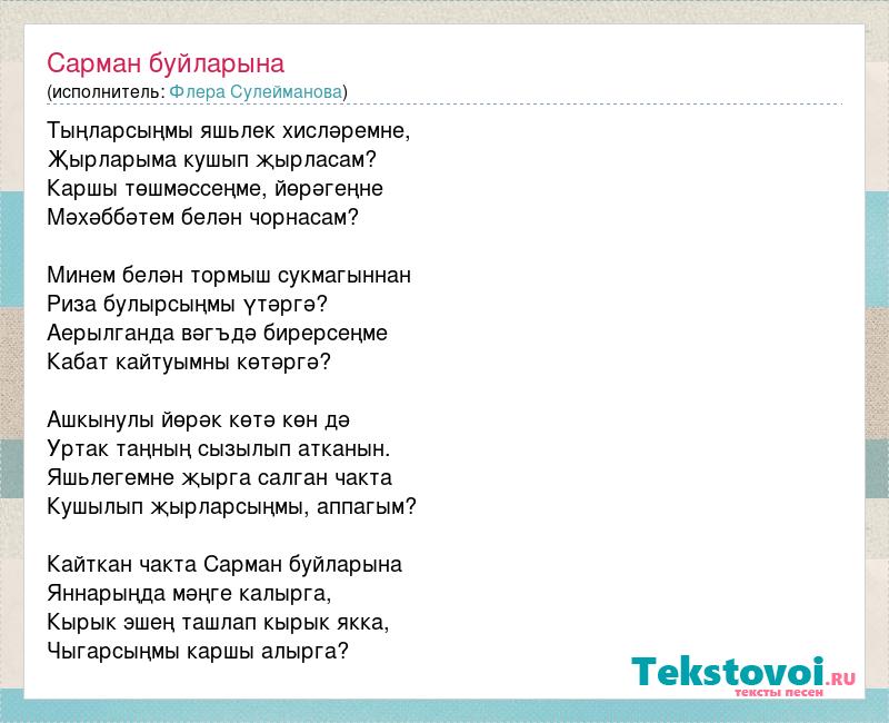 А как ты думаешь, о чем песня "Сарман буйларына" ?