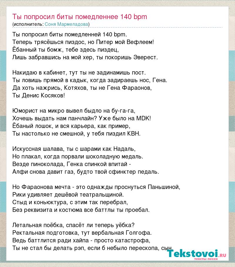 А как ты думаешь, о чем песня "Ты попросил биты помедленнее 140 bpm" ?