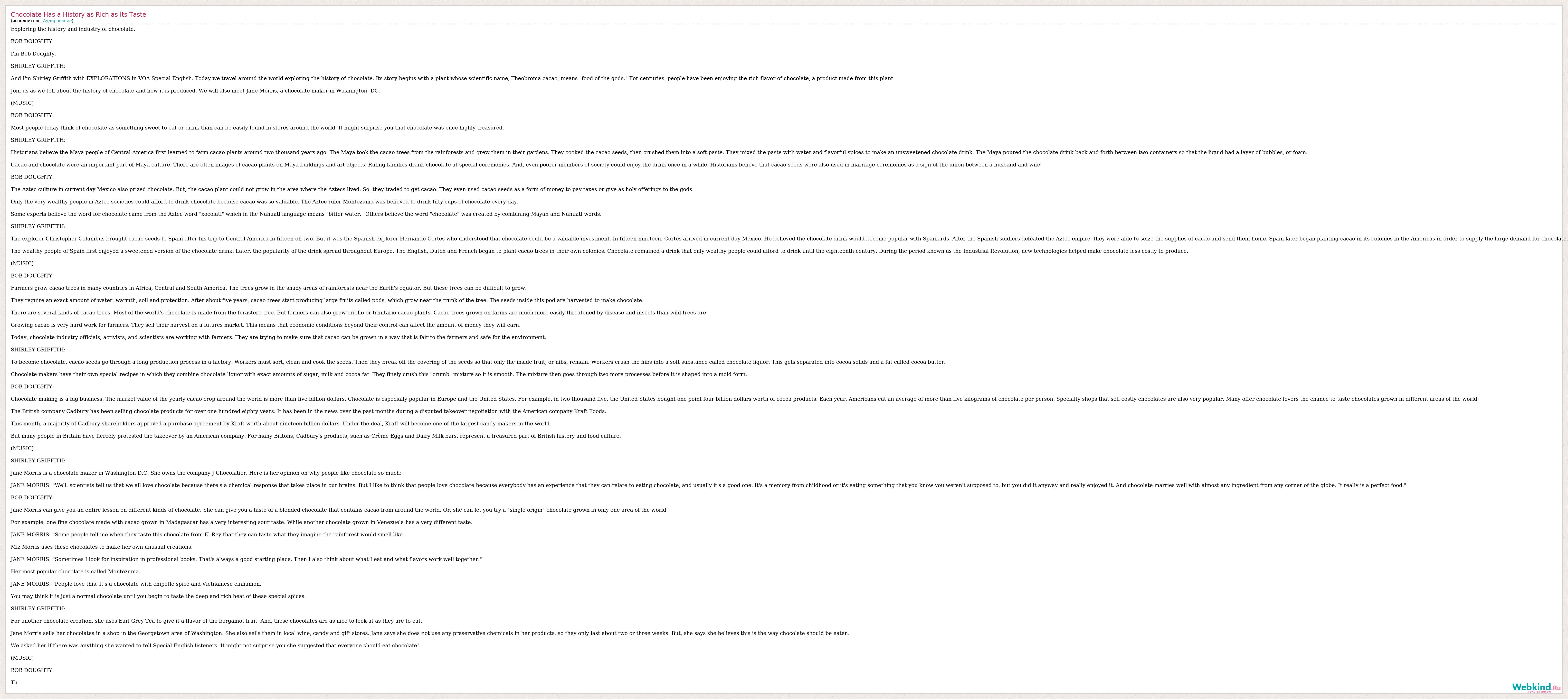 А как ты думаешь, о чем песня "Chocolate Has a History as Rich as Its Taste" ?