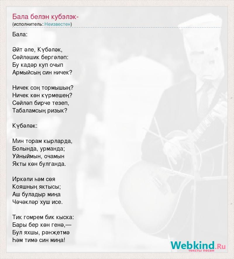 А как ты думаешь, о чем песня "Бала белэн кубэлэк-" ?