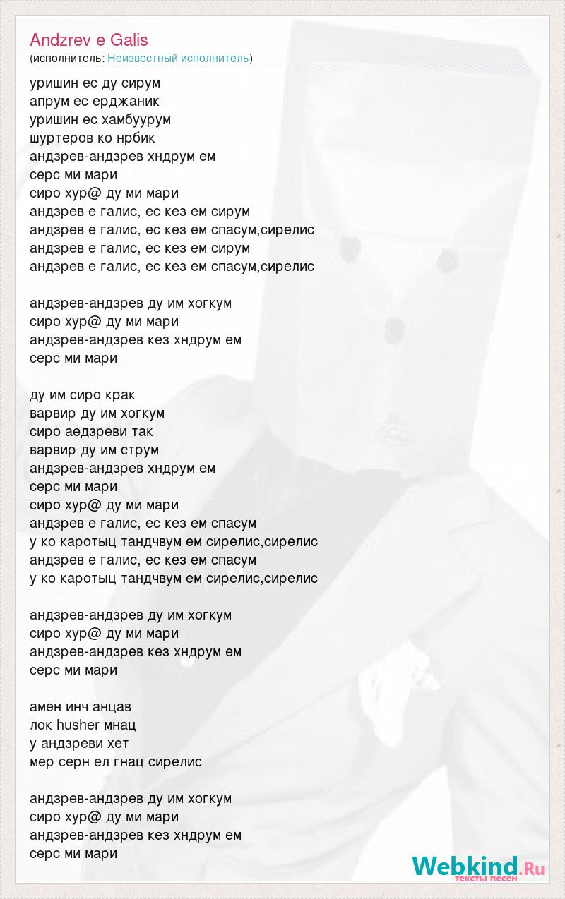 уришин ес ду сирум апрум ес ерджаник уришин ес хамбуурум шуртеров ко нрбик андзрев-андзрев хндрум ем серс ми мари сиро хур@ ду ми мари андзрев е галис, ес кез ем сирум андзрев е галис, ес кез ем спасум,сирелис андзрев е галис, ес кез ем сирум андзрев е галис, ес кез ем спасум,сирелис андзрев-андзрев ду им хогкум сиро хур@ ду ми мари андзрев-андзрев кез хндрум ем серс ми мари ду им сиро крак варвир ду им хогкум сиро аедзреви так варвир ду им струм андзрев-андзрев хндрум ем серс ми мари сиро хур@ ду ми мари андзрев е галис, ес кез ем спасум у ко каротыц тандчвум ем сирелис,сирелис андзрев е галис, ес кез ем спасум у ко каротыц тандчвум ем сирелис,сирелис андзрев-андзрев ду им хогкум сиро хур@ ду ми мари андзрев-андзрев кез хндрум ем серс ми мари амен инч анцав лок husher мнац у андзреви хет мер серн ел гнац сирелис андзрев-андзрев ду им хогкум сиро хур@ ду ми мари андзрев-андзрев кез хндрум ем серс ми мари