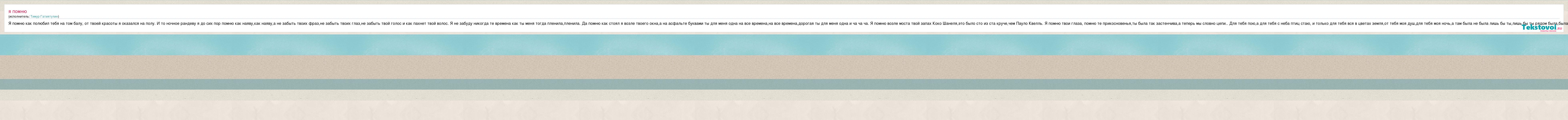 Я помню как полюбил тебя на том балу, от твоей красоты я оказался на полу. И то ночное рандеву я до сих пор помню как наяву,как наяву,а не забыть твоих фраз,не забыть твоих глаз,не забыть твой голос и как пахнет твой волос. Я не забуду никогда те времена как ты меня тогда пленила,пленила. Да помню как стоял я возле твоего окна,а на асфальте буквами ты для меня одна на все времена,на все времена,дорогая ты для меня одна и ча ча ча. Я помню возле моста твой запах Коко Шанеля,это было сто из ста круче,чем Пауло Квелль. Я помню твои глаза, помню те прикосновенья,ты была так застенчива,а теперь мы словно цепи.. Для тебя пою,а для тебя с неба птиц стаю, и только для тебя вся в цветах земля,от тебя моя душ,для тебя моя ночь,а там была не была лишь бы ты,лишь бы ты рядом была,была